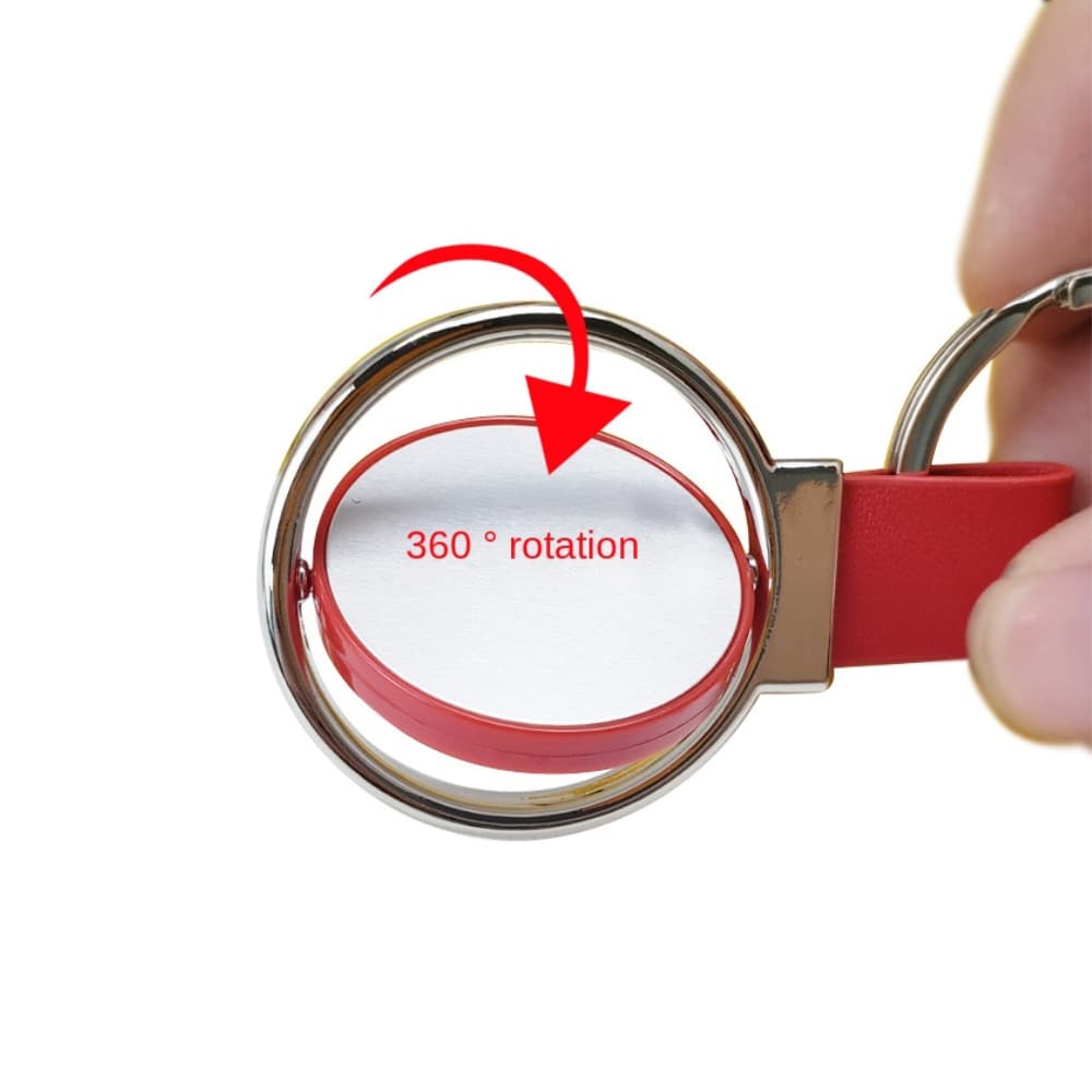 This round metal key holder is manufactured using durable metal with a smooth chrome finish that resists scratches and daily wear. The rotatable keyring design adds flexibility and ease of use, while the PU leather strap enhances grip and visual appeal. Its balanced weight gives a premium feel without being bulky, making it perfect for daily use on keys, bags, or lanyards.