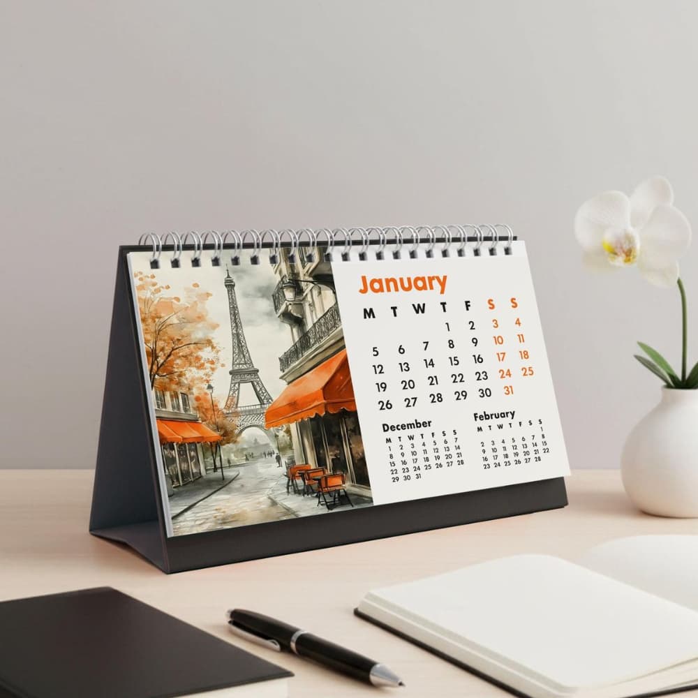 Our 100-copy desktop calendars start from just 700 AED, making them a cost-effective solution for corporate giveaways and promotional campaigns.