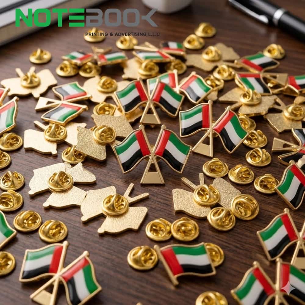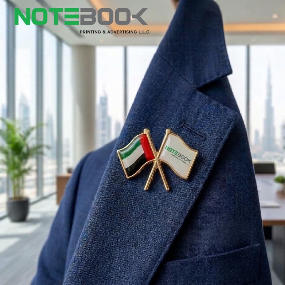 Businesses searching for custom lapel pins in Dubai, UAE flag badges, or double flag enamel pins can rely on Notebook Advertising LLC as a reliable supplier.