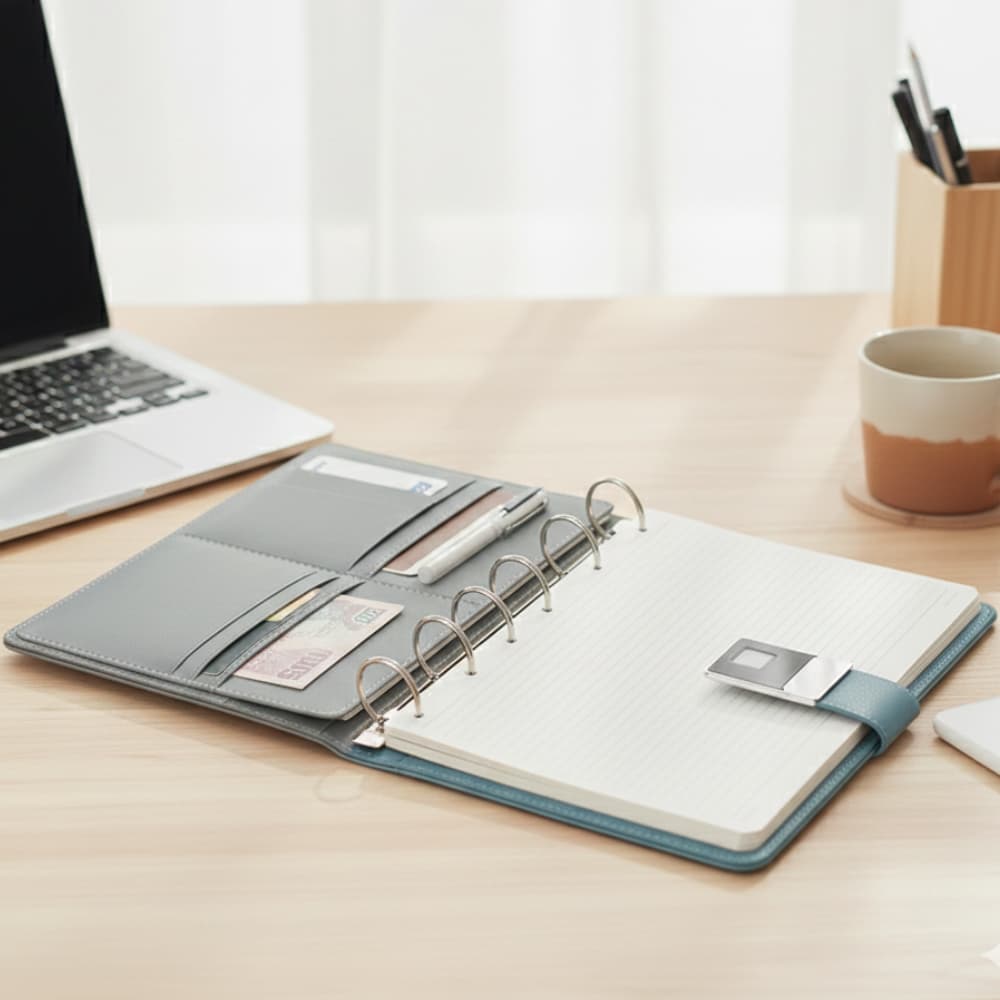 The notebook features rapid 0.8s fingerprint recognition, keeping your notes, business cards, and private info highly secure.
