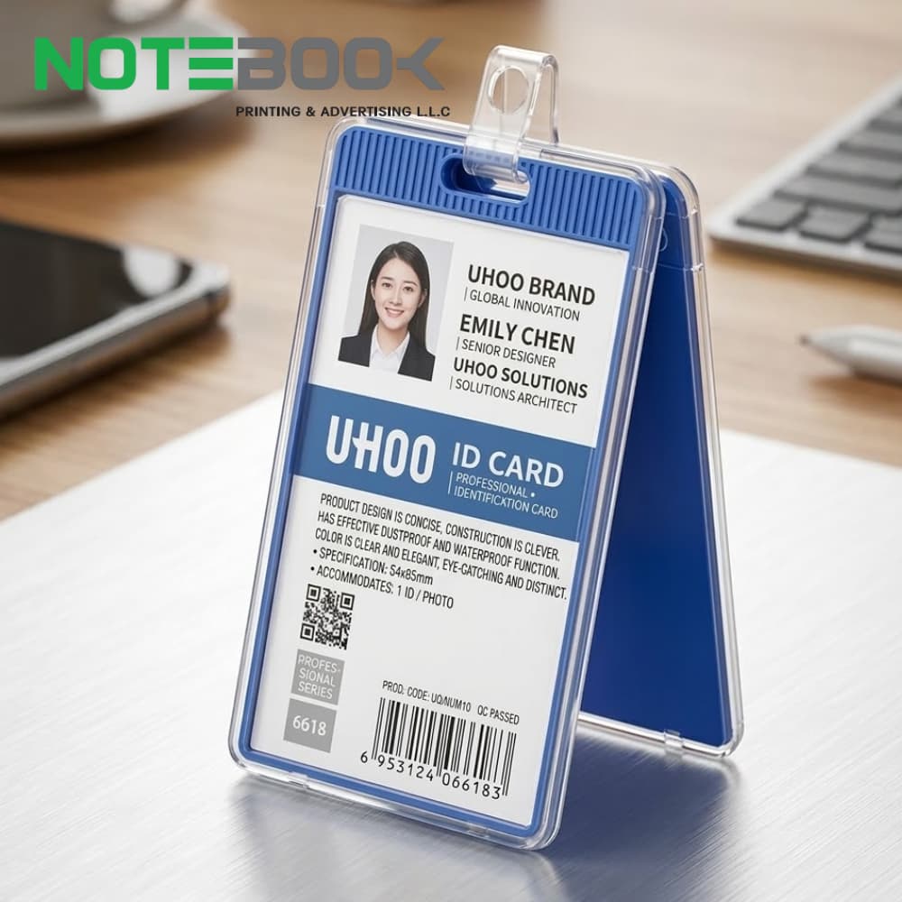 Notebook Advertising LLC supplies ID card holders, badge holders, and PVC ID card printing solutions to businesses across Dubai, Abu Dhabi, Sharjah, and the UAE.