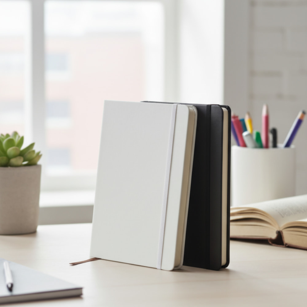 We offer White, Black, Blue, and Gray hardcover notebooks, suitable for both branded notebooks and personalised notebooks, giving a professional and elegant look.