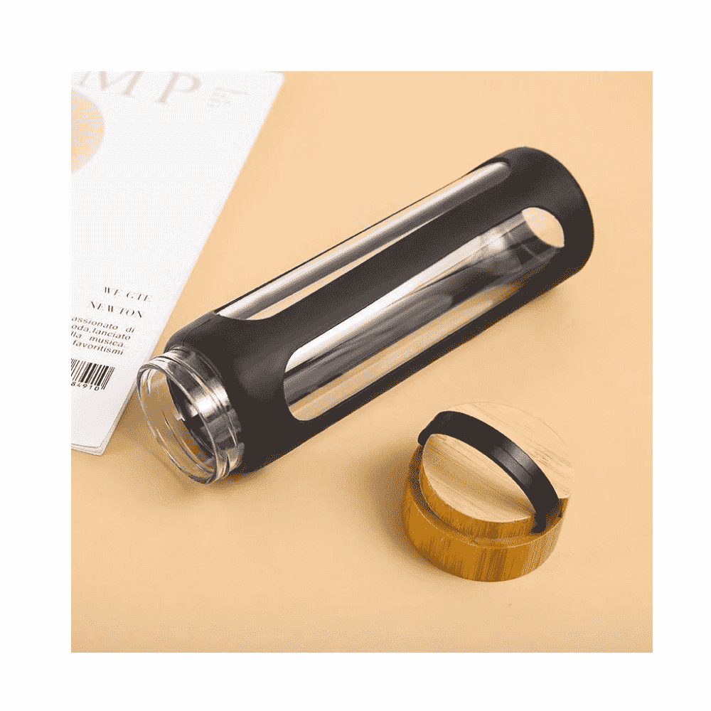 Glass Water Bottle With Bamboo Lid And Silica Cup Cover