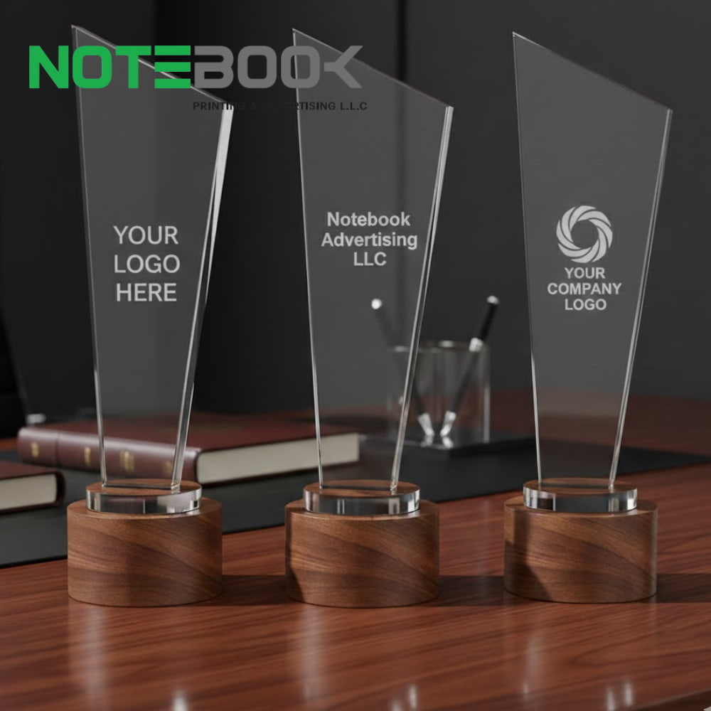 Whether it’s a single VIP recognition award or multiple trophies for corporate events, Notebook Advertising LLC provides high-quality, fully customized crystal trophies across Dubai, Abu Dhabi, Sharjah, and other Emirates.