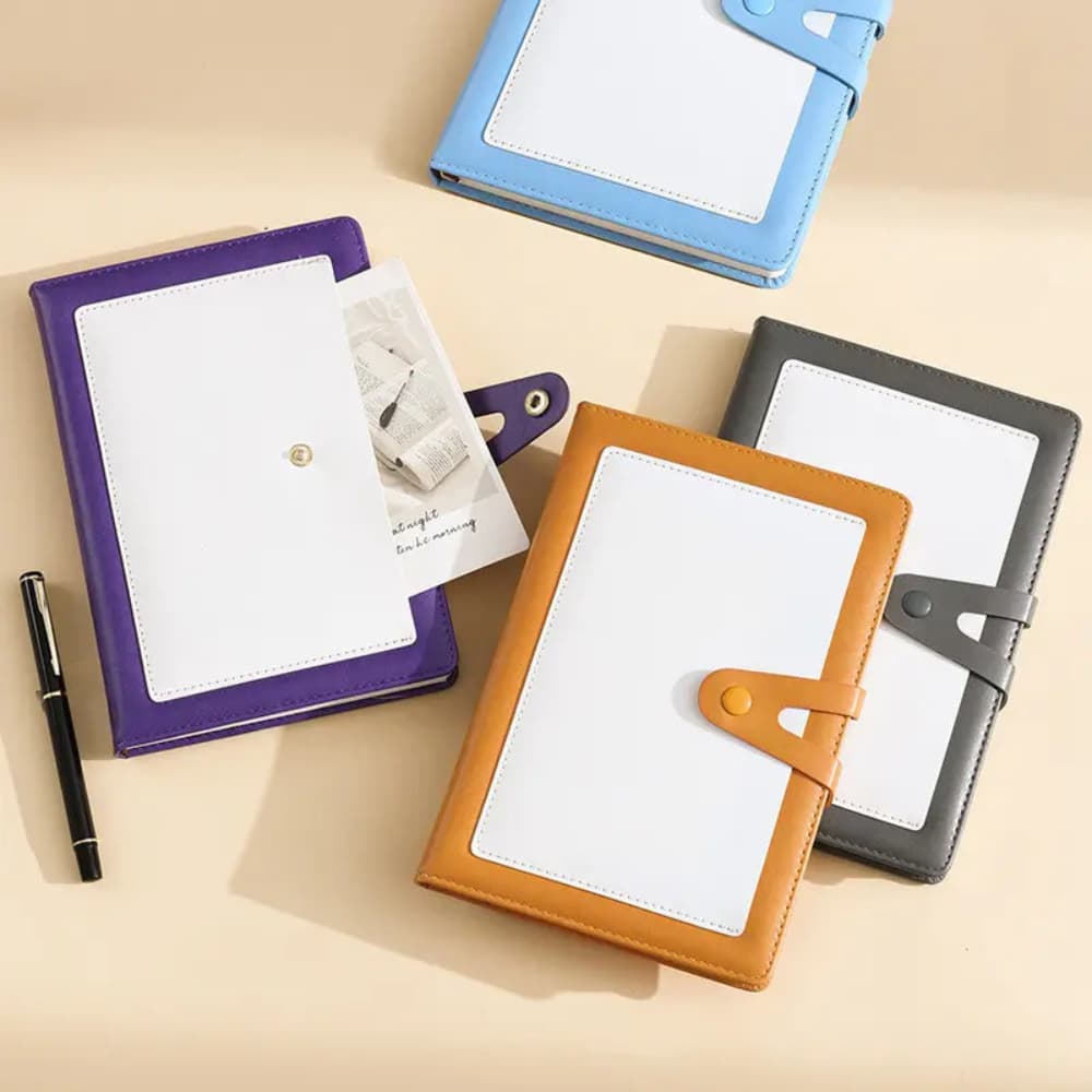 Each notebook features a PU leather cover, eco-friendly paper, and a magnetic buckle pocket, making it a practical and stylish choice for corporate branding. These personalized notebooks are ideal for companies seeking a professional presentation for clients, employees, or events.