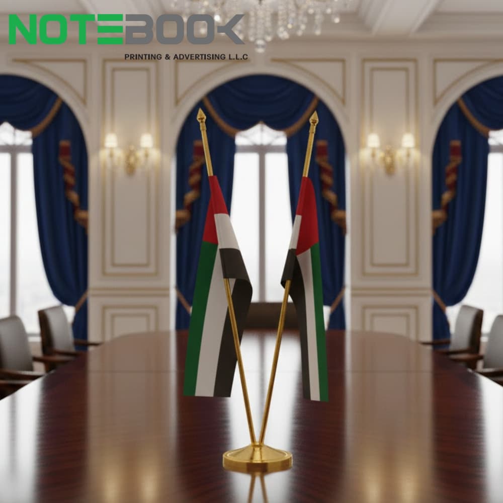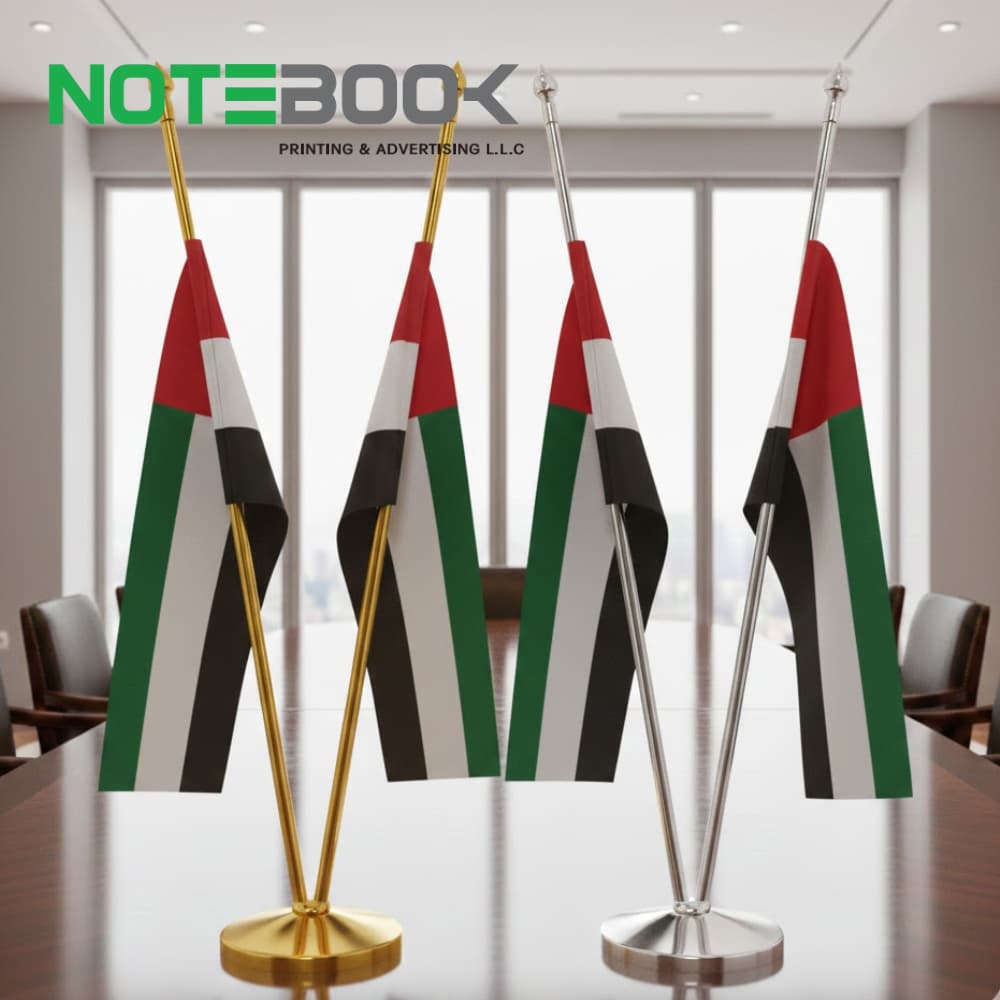 In addition to supplying premium stands, Notebook Advertising LLC provides professional custom flags and flag printing services in Dubai. From company logo flags to event-specific and national celebration flags, we offer high-quality fabric printing with bulk supply options tailored to corporate requirements.