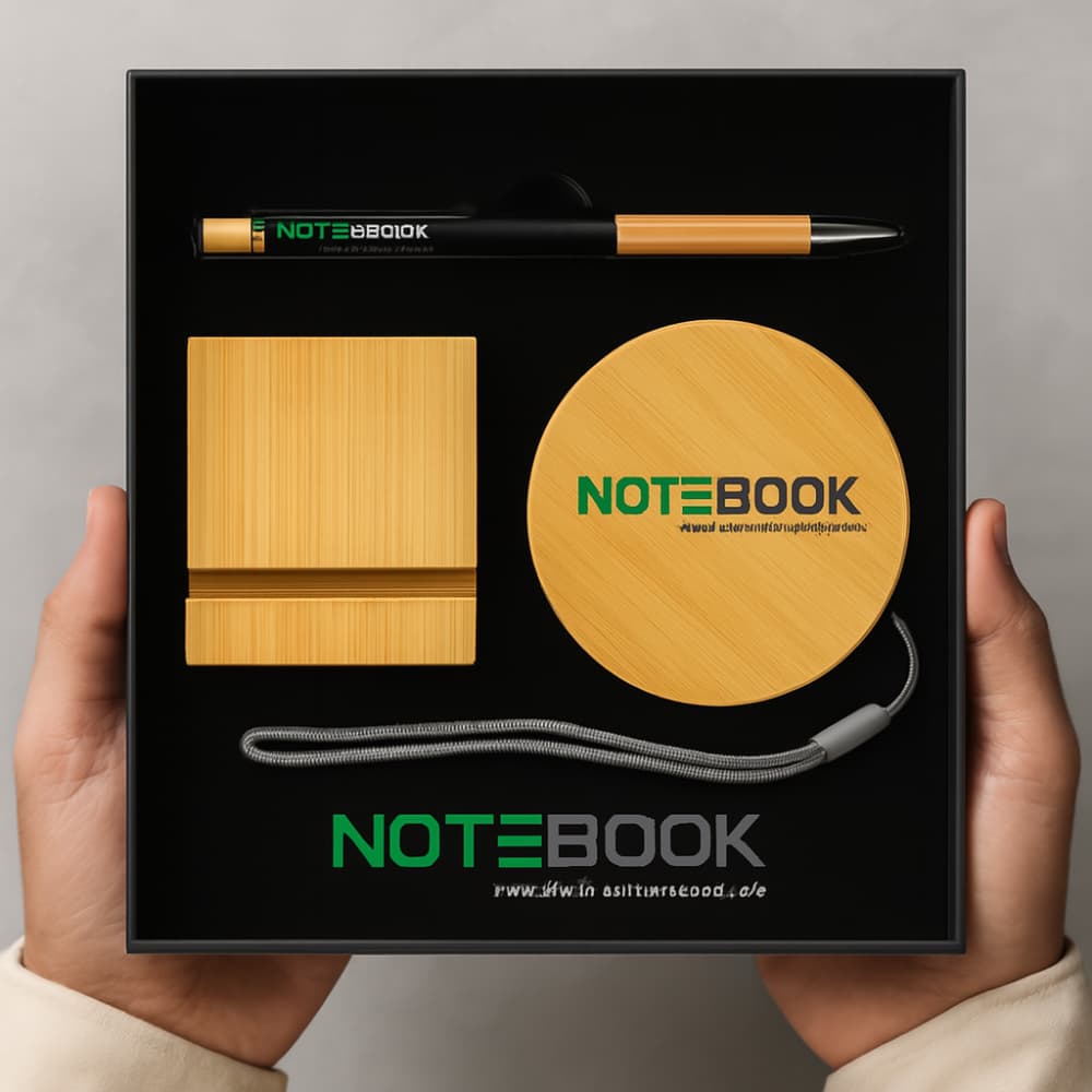 As one of the leading corporate gift suppliers in Dubai, Abu Dhabi, and Sharjah, Notebook Advertising LLC delivers eco-friendly corporate gifts, sustainable giveaways, and personalized office gift sets that align with your company’s values. Impress clients, reward employees, and promote sustainability — all with one elegant, modern wooden gift set.