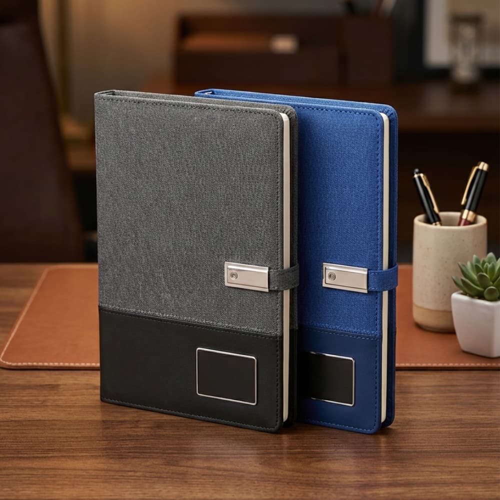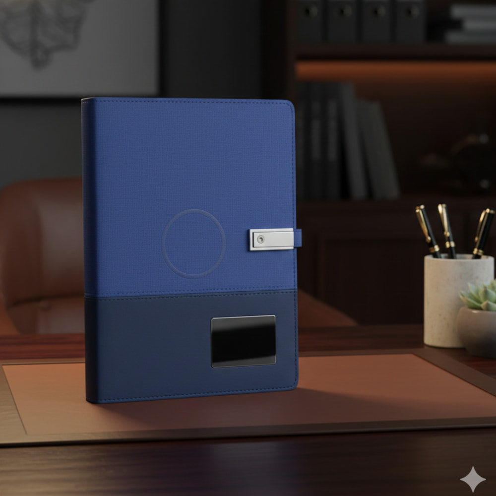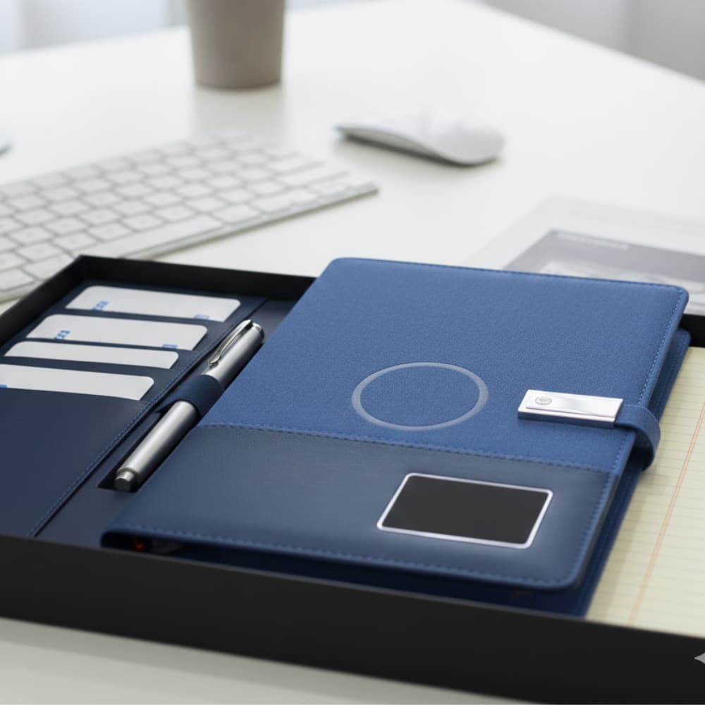 Upgrade your corporate gifting with the A5 Smart Organizer Notebook, a multifunctional notebook combining style, functionality, and cutting-edge technology. Designed for professionals and executives, this premium organizer features a built-in power bank and MagSafe-compatible wireless charging pad, making it an ideal corporate gift, tech giveaway, or promotional event gift in Dubai and across the UAE.