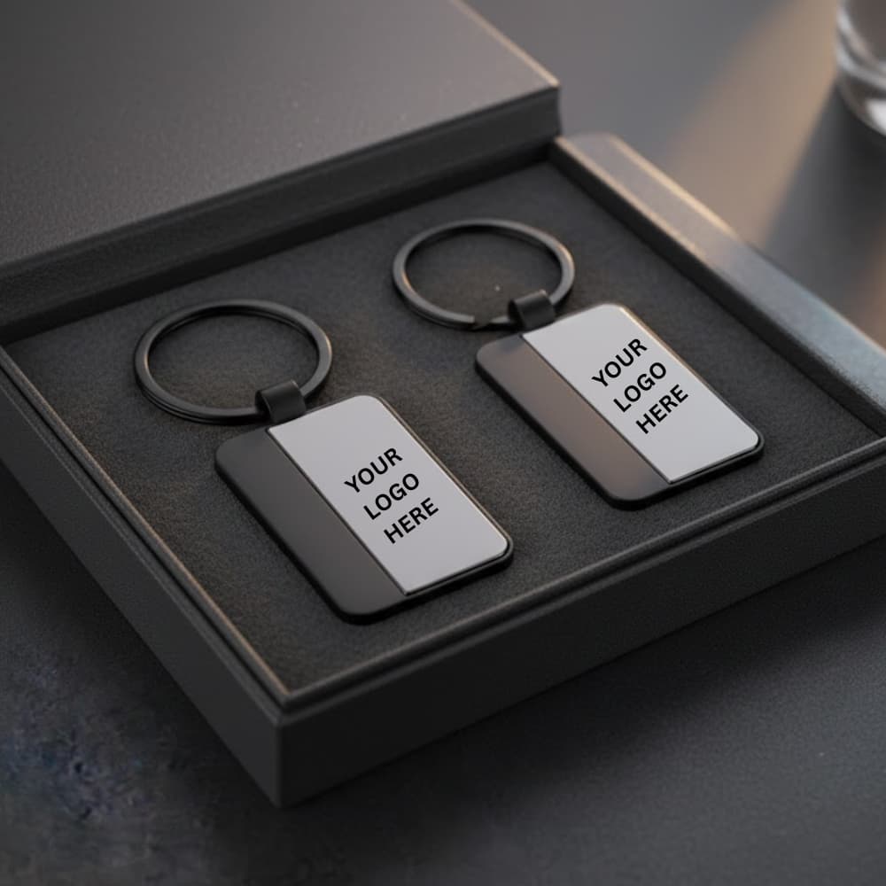 These keychains are made from durable metal with a sleek, polished finish, ensuring long-lasting use and a professional appearance.
