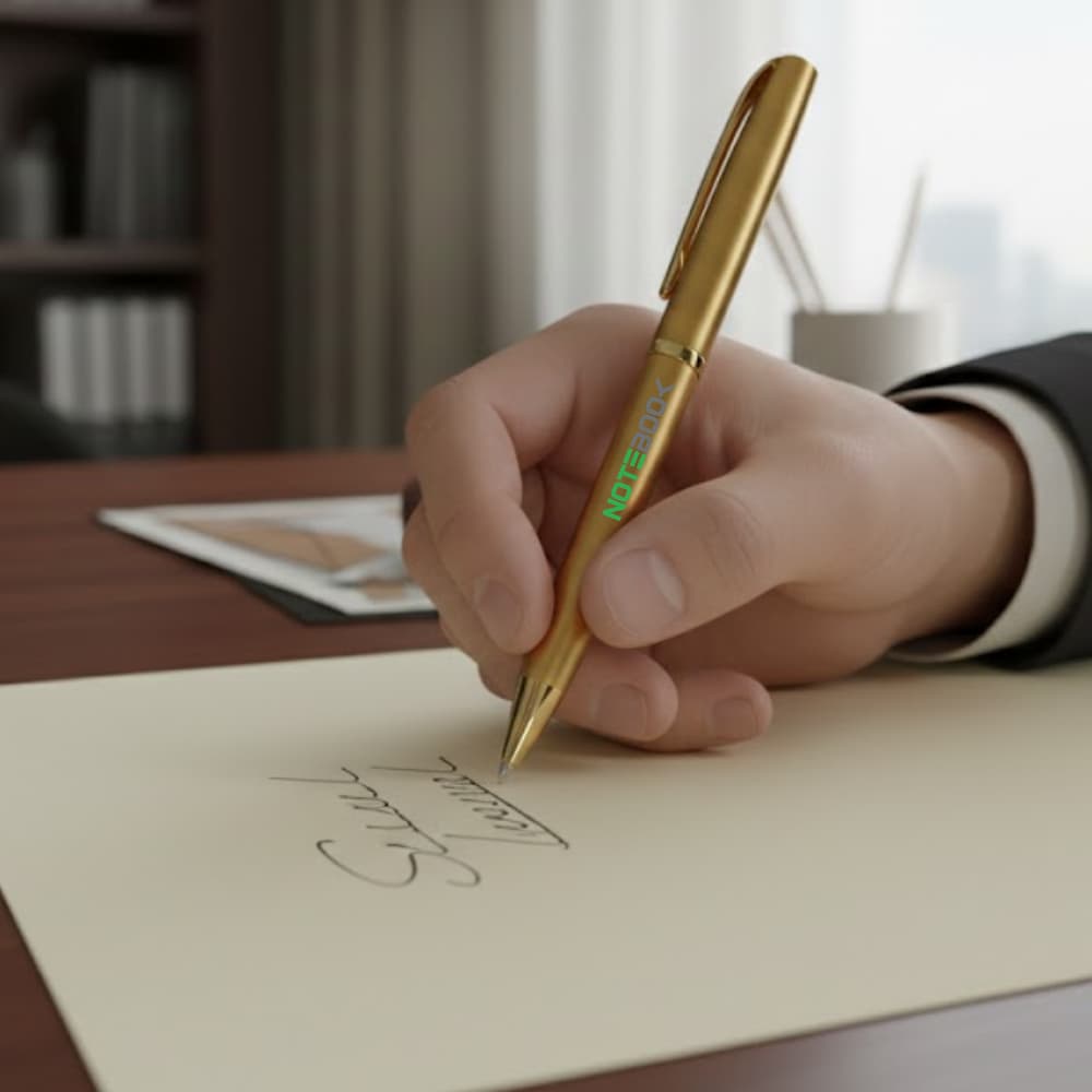 Upgrade your corporate gifting with the Golden Metal Pen from Notebook Advertising LLC, Dubai’s leading provider of custom metal pen printing, engraved pens, and personalized promotional products. Perfectly blending elegance, durability, and functionality, this custom printed metal pen is designed to leave a lasting impression on clients, employees, and business partners. With UV printing, screen printing, and logo printing on pens, you can showcase your brand on every piece, making it a standout corporate gift across Dubai, Abu Dhabi, Sharjah, and the UAE.