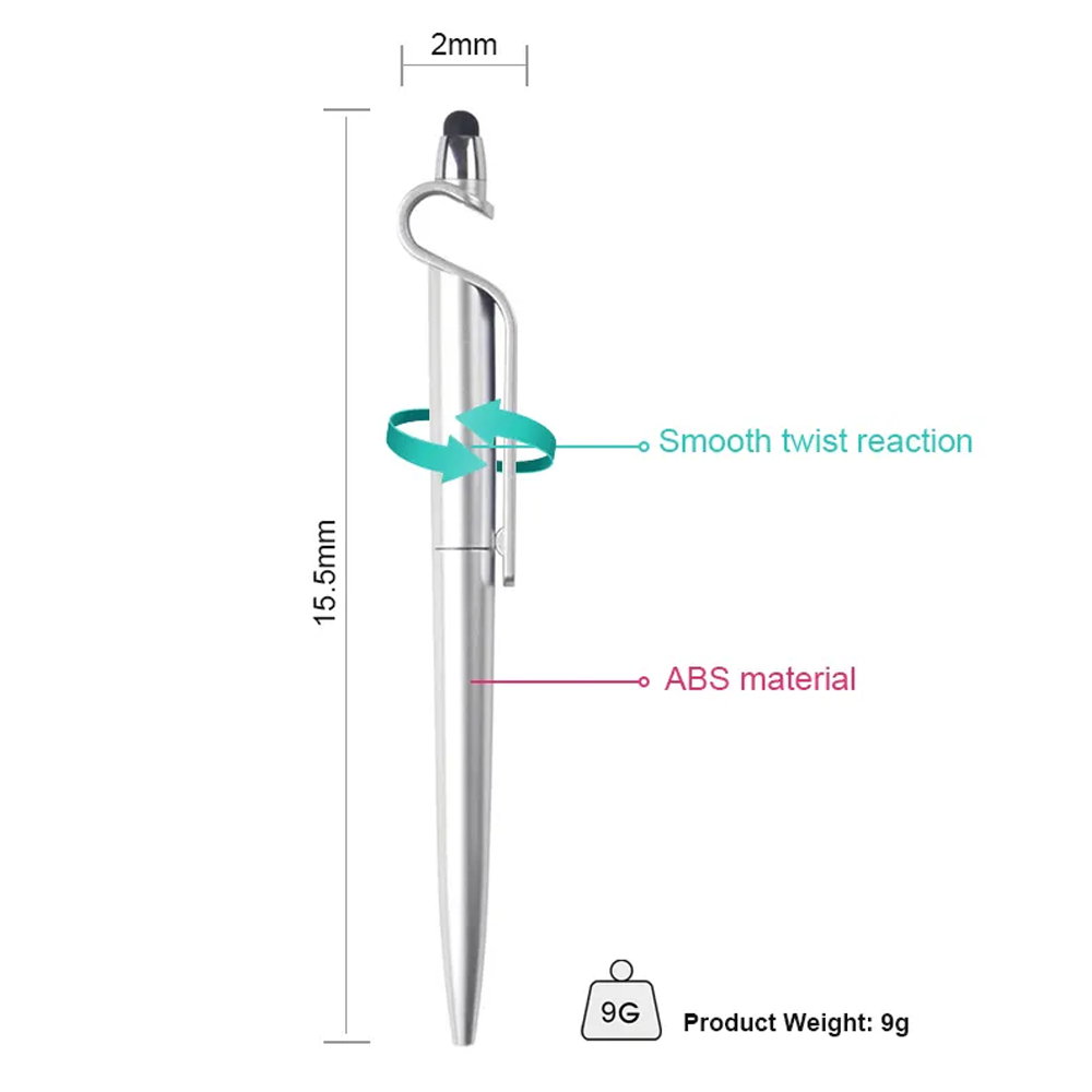 Introducing our Stylus Touch Phone Holder Ballpoint Pen, a versatile and innovative tool designed to streamline your daily tasks and elevate your mobile experience. This multi-functional device combines three essential tools into one compact and stylish design: